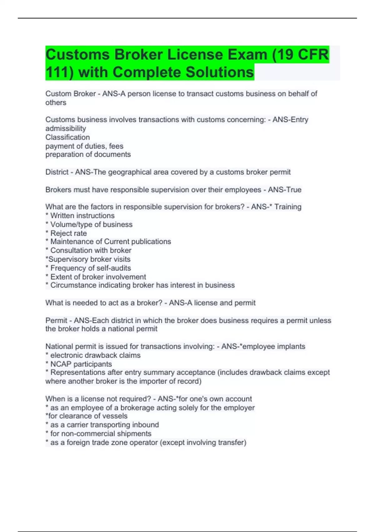 Customs Broker /CCS/Bahamas Customs Brokerage Exams Package Deal -Solved