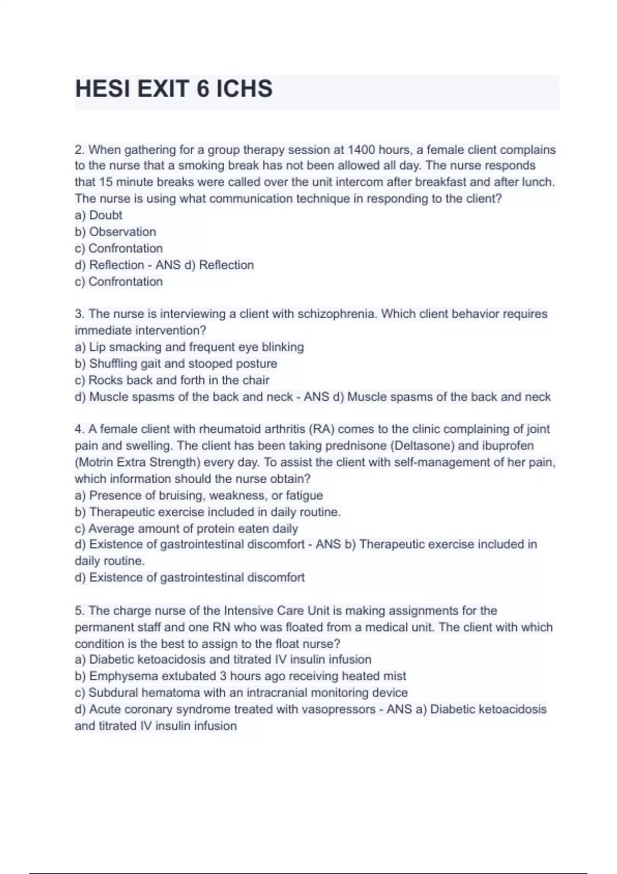 HESI EXIT 6 ICHS Exam 2024/2025 Questions With Guaranteed Pass Solutions.