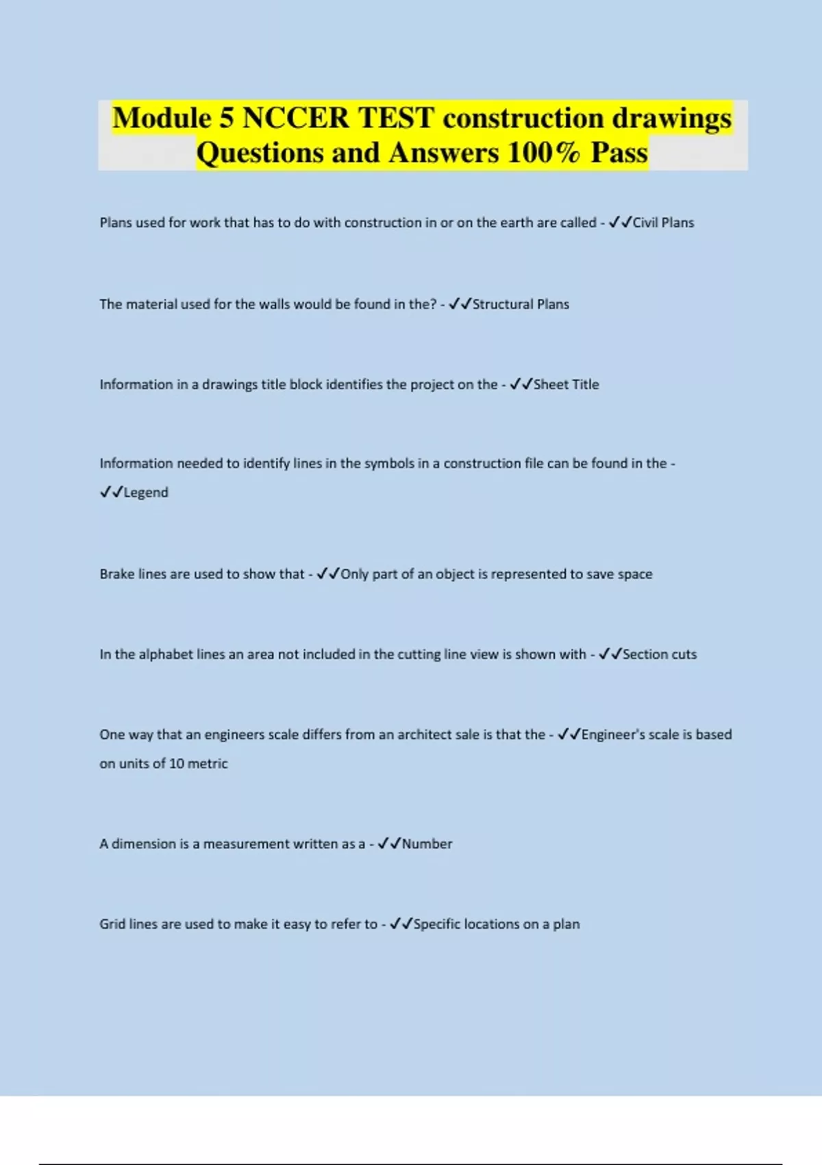 Module 5 NCCER TEST construction drawings Questions and Answers 100% Pass