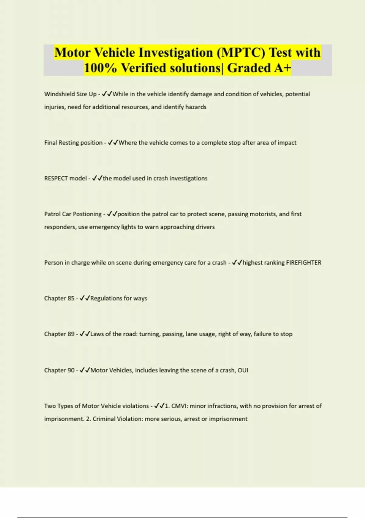 Motor Vehicle Investigation (MPTC) Test with 100% Verified solutions| Graded A+