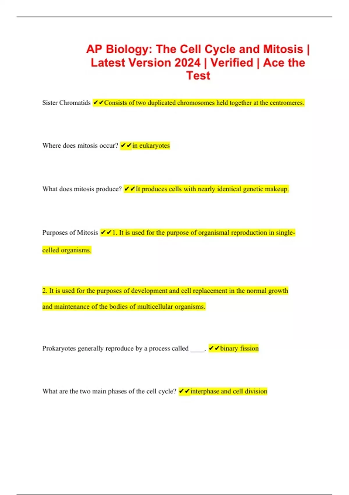 AP Biology: The Cell Cycle and Mitosis | Latest Version 2024 | Verified | Ace the Test