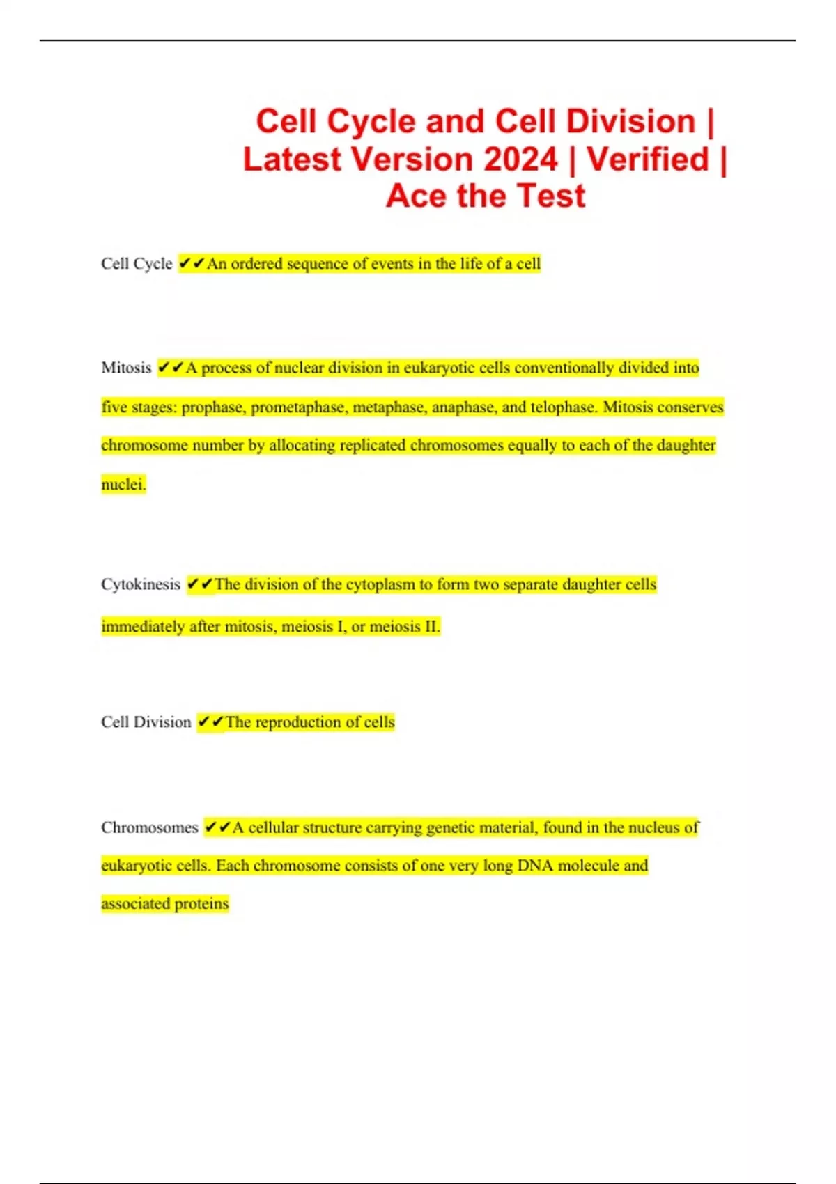 Cell Cycle and Cell Division | Latest Version 2024 | Verified | Ace the Test