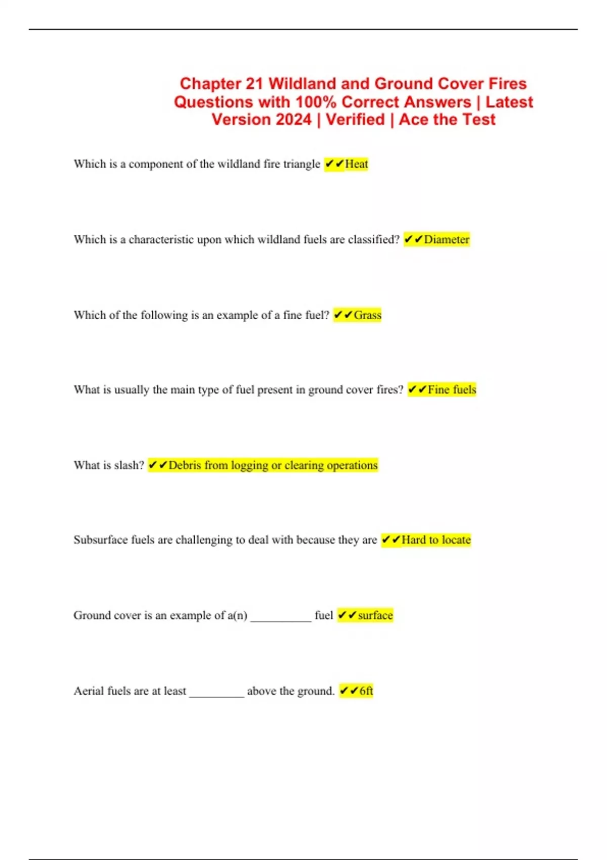 Chapter 21 Wildland and Ground Cover Fires Questions with 100% Correct Answers | Latest Version 2024 | Verified | Ace the Test