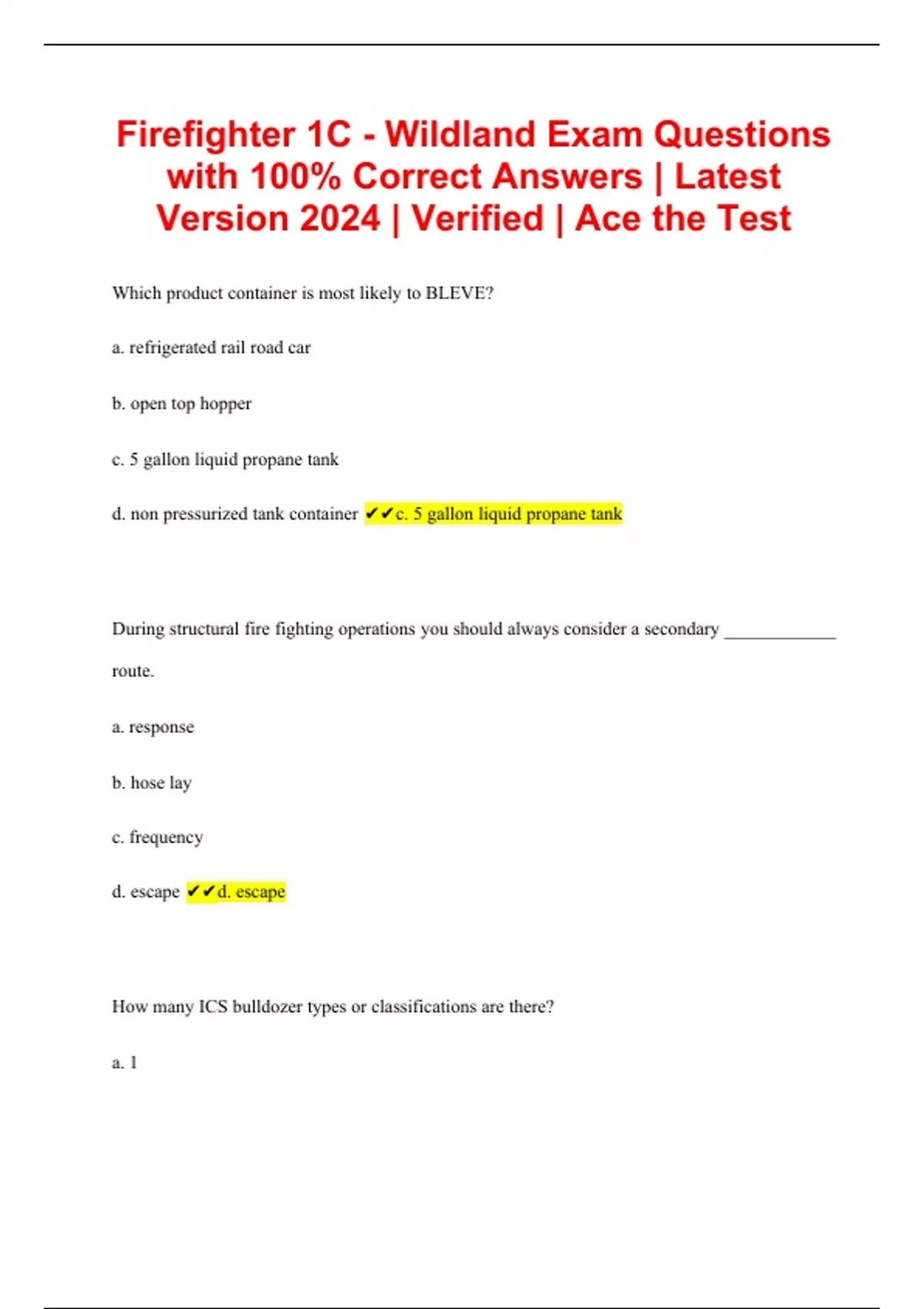 Firefighter 1C - Wildland Exam Questions with 100% Correct Answers | Latest Version 2024 | Verified | Ace the Test