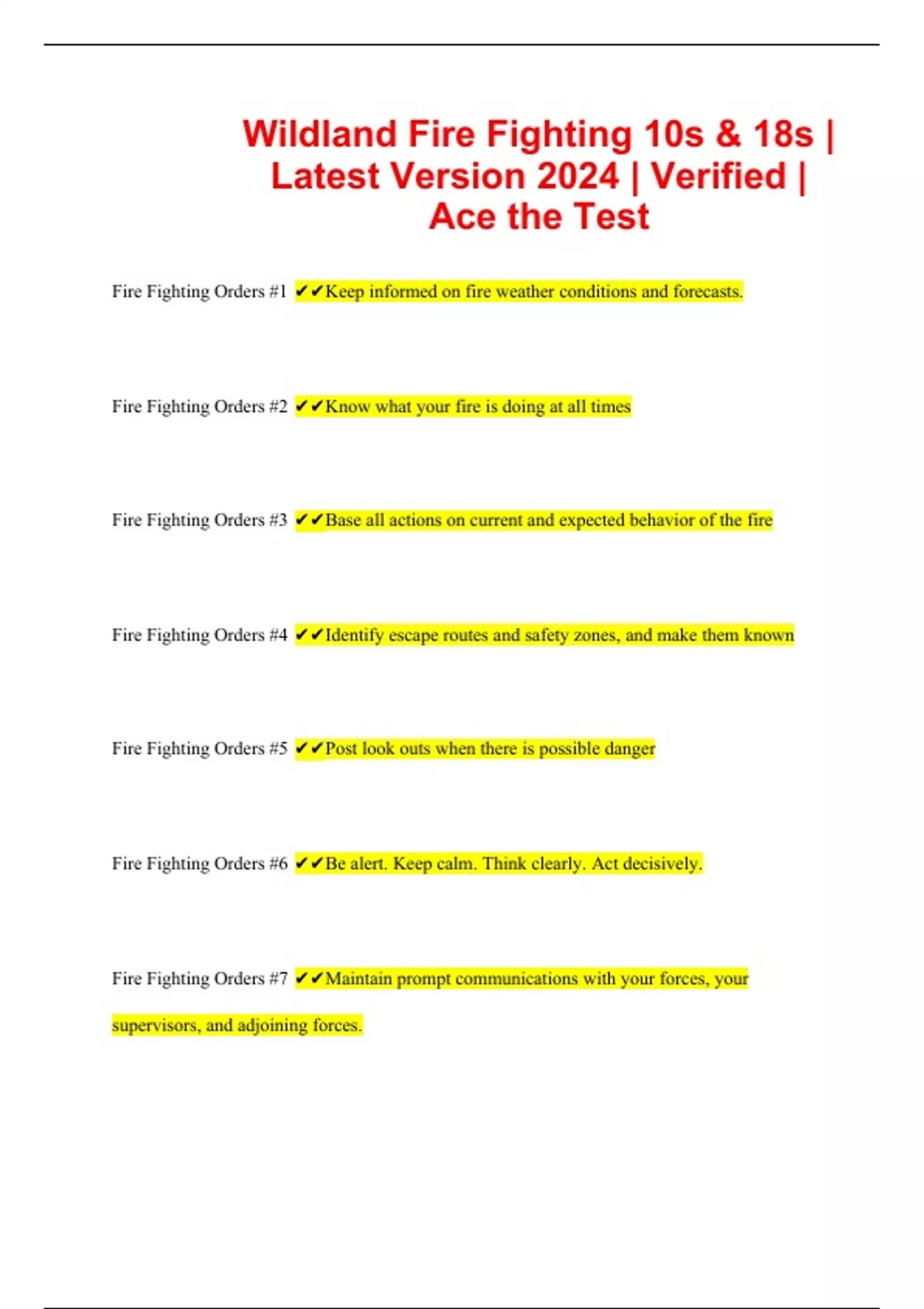 Wildland Fire Fighting 10s & 18s | Latest Version 2024 | Verified | Ace the Test