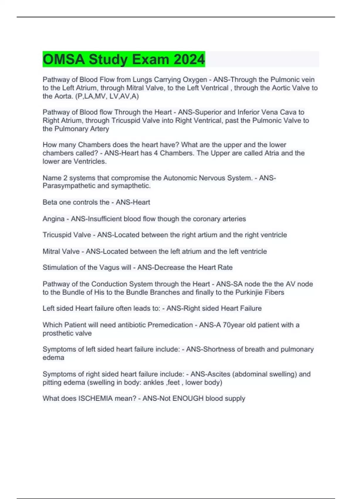 OMSA Study Exam with Complete Solutions 2024