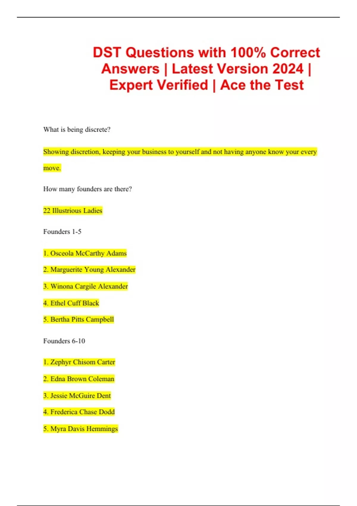 DST Questions with 100% Correct Answers | Latest Version 2024 | Expert Verified | Ace the Test