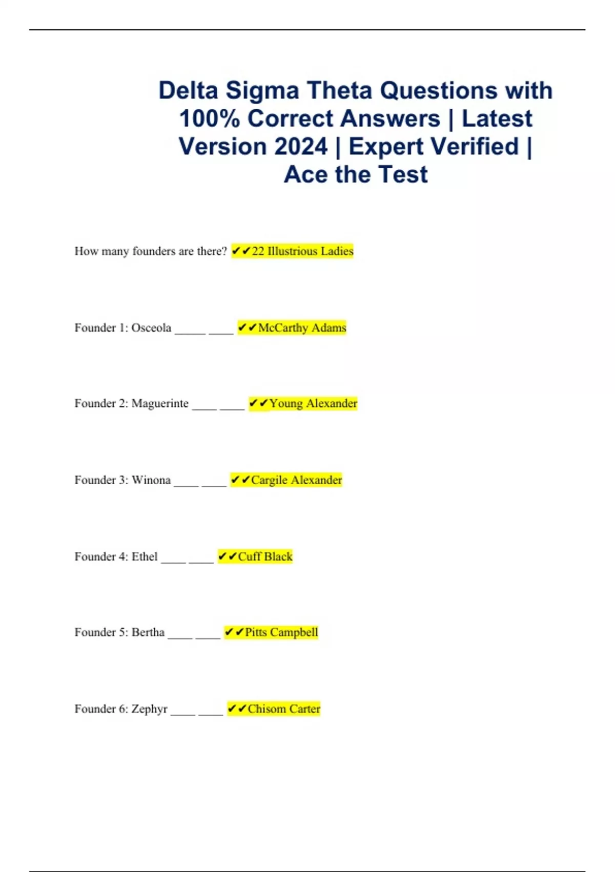Delta Sigma Theta Questions with 100% Correct Answers | Latest Version 2024 | Expert Verified | Ace the Test