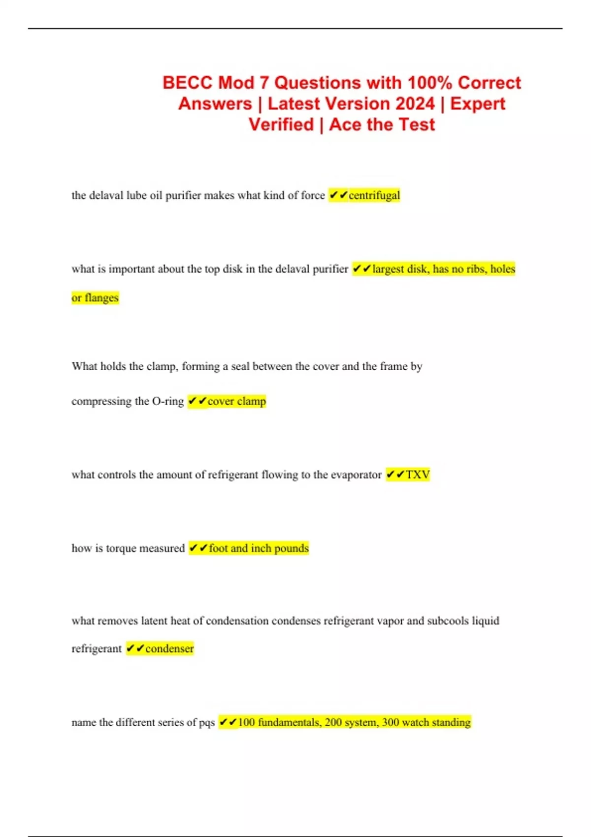 BECC Mod 7 Questions with 100% Correct Answers | Latest Version 2024 | Expert Verified | Ace the Test