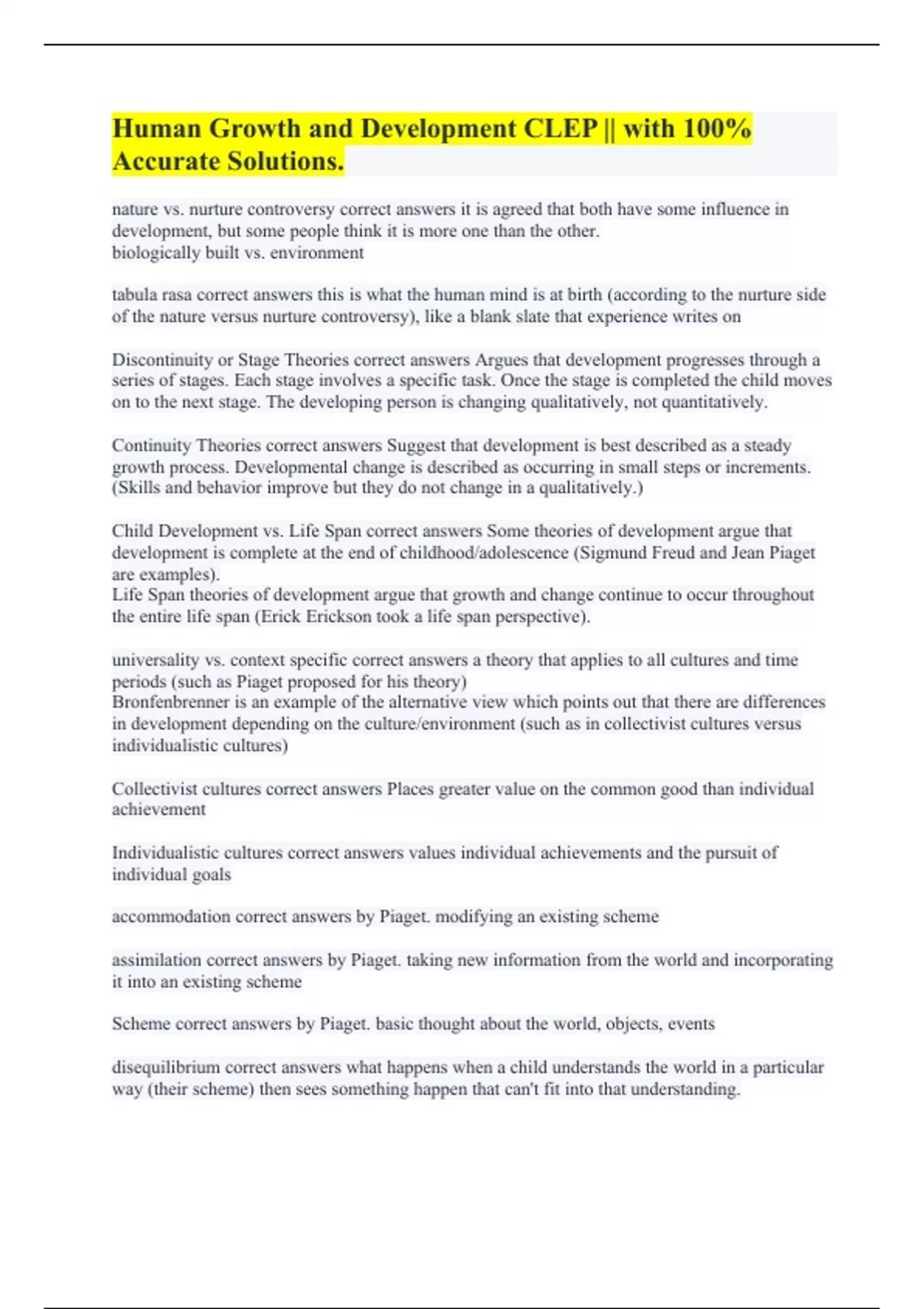 Human Growth and Development CLEP || with 100% Accurate Solutions.