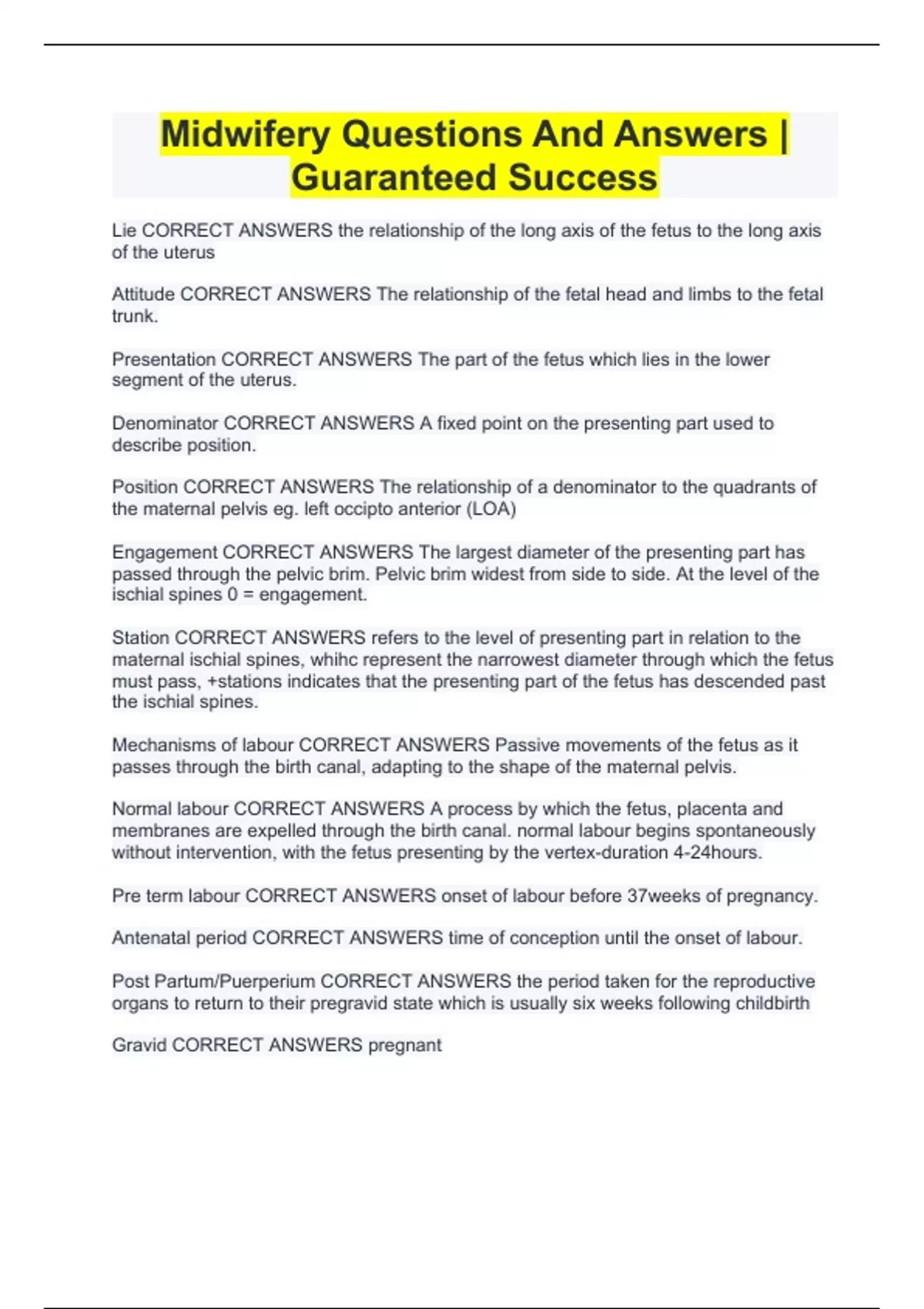 Midwifery Questions And Answers | Guaranteed Success