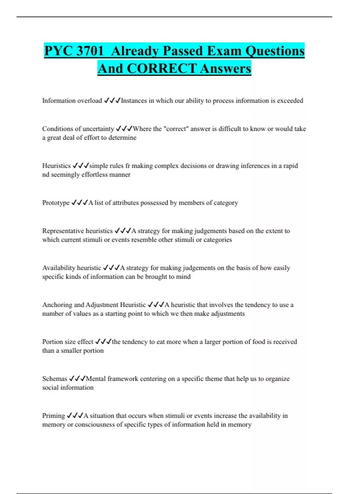 PYC 3701 Already Passed Exam Questions And CORRECT Answers