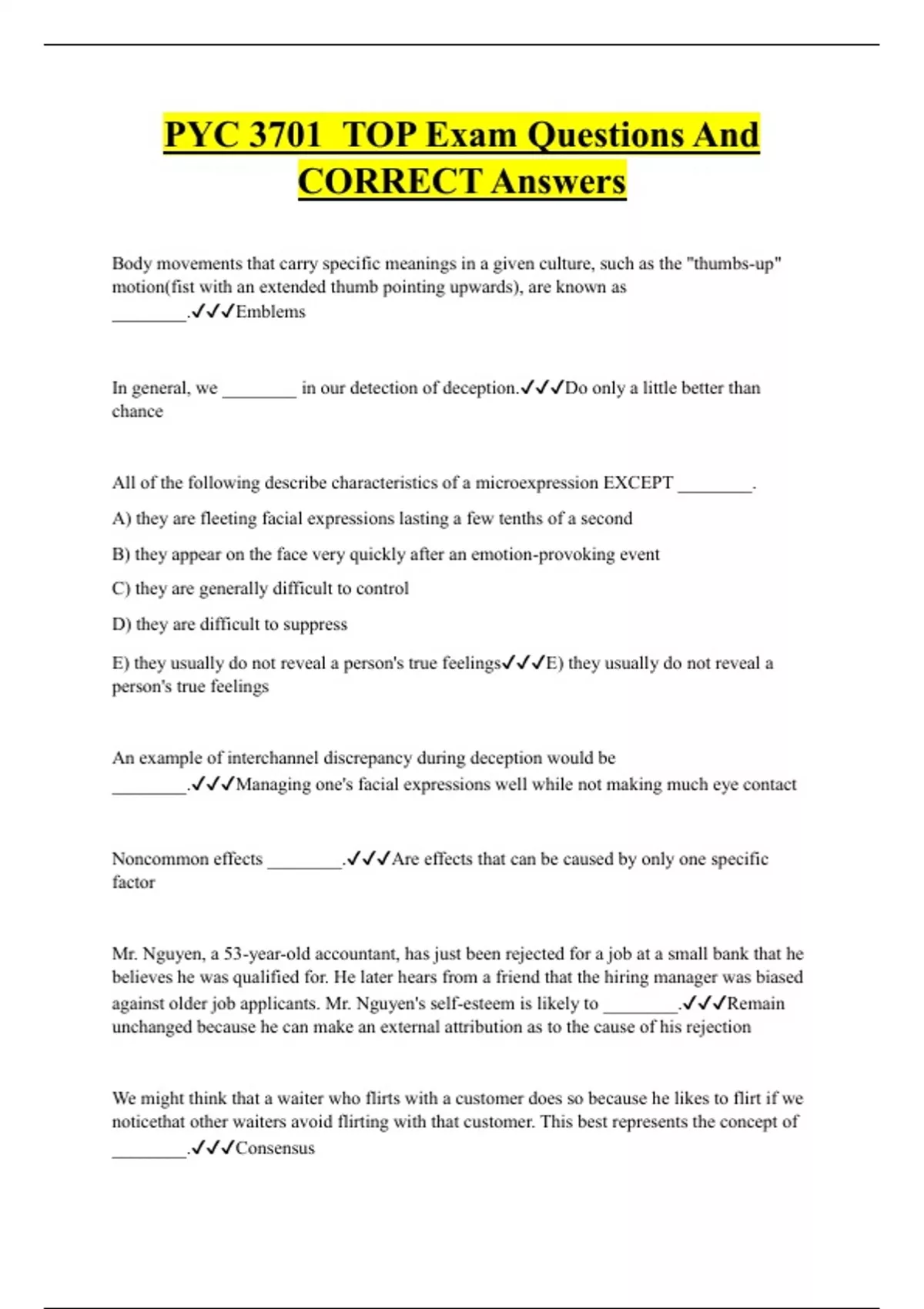 PYC 3701 TOP Exam Questions And CORRECT Answers