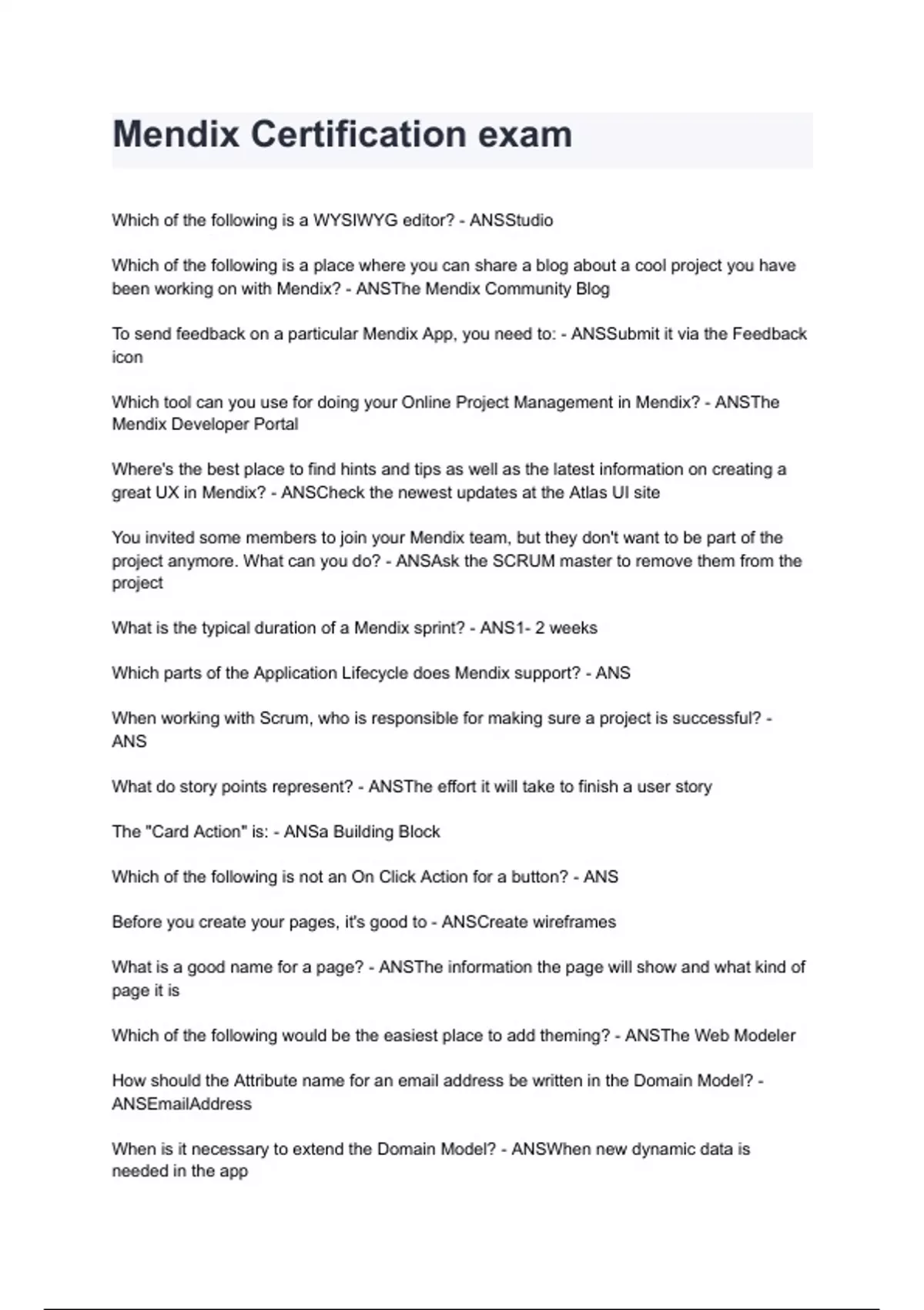 What is the typical duration of a Mendix sprint? - ANS1- 2 weeks
