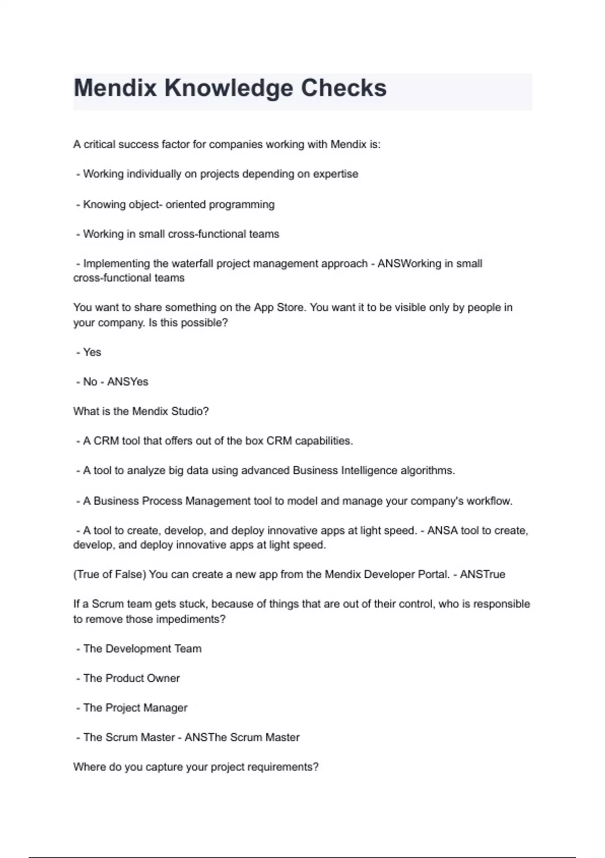 (True of False) You can create a new app from the Mendix Developer Portal. - ANSTrue