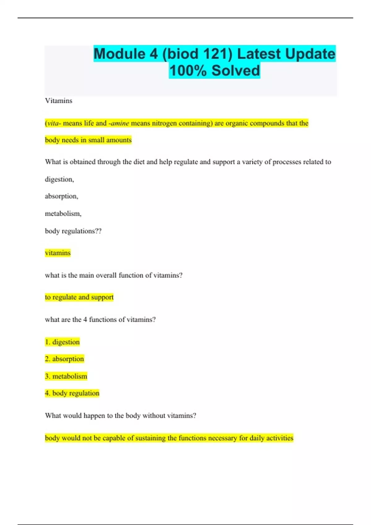 Module 4 (biod 121) Study Guide 2024 Latest Update 100% Solved