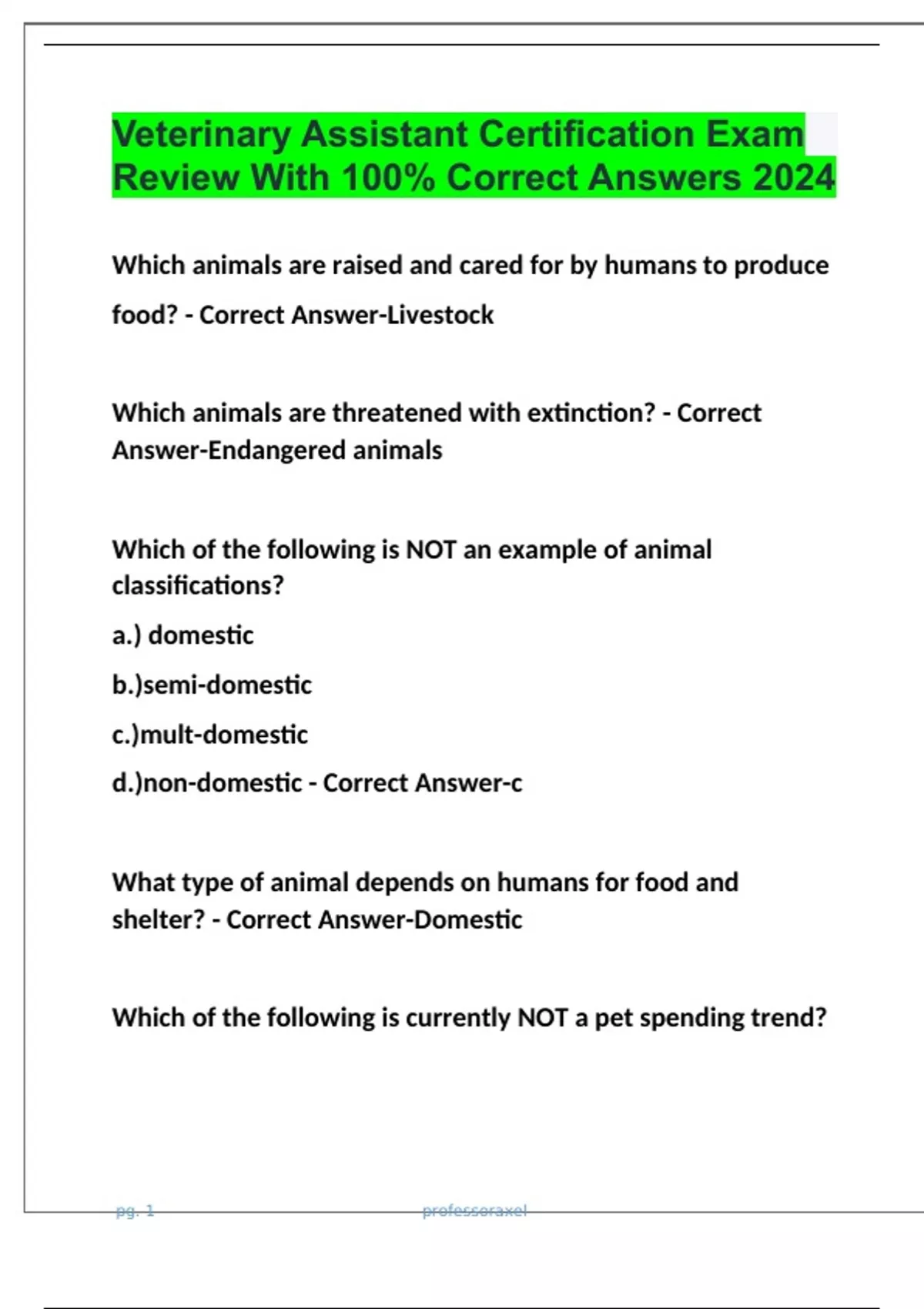 Veterinary Assistant Certification Exam Review With 100% Correct Answers 2024