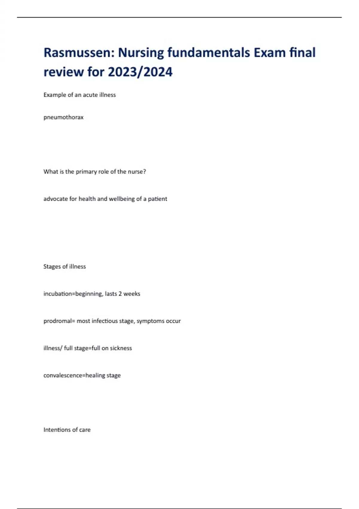 Rasmussen: Nursing fundamentals Exam final review for 2023/2024