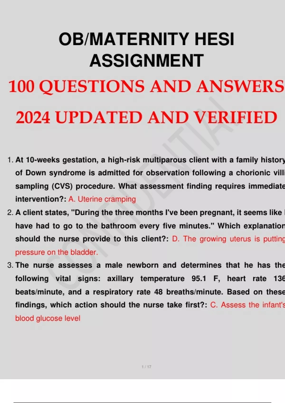 HESI MATERNITY OB ASSIGNMENT 100 QUESTIONS AND ANSWERS 2024 VERIFIED AND UPDATED.