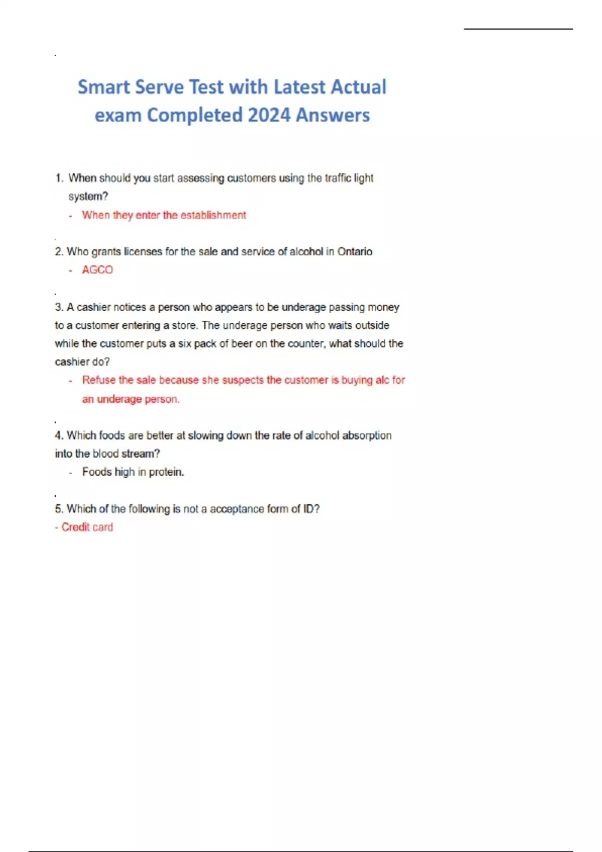 Smart Serve Test with Latest Actual Exam Completed 2024 Answers