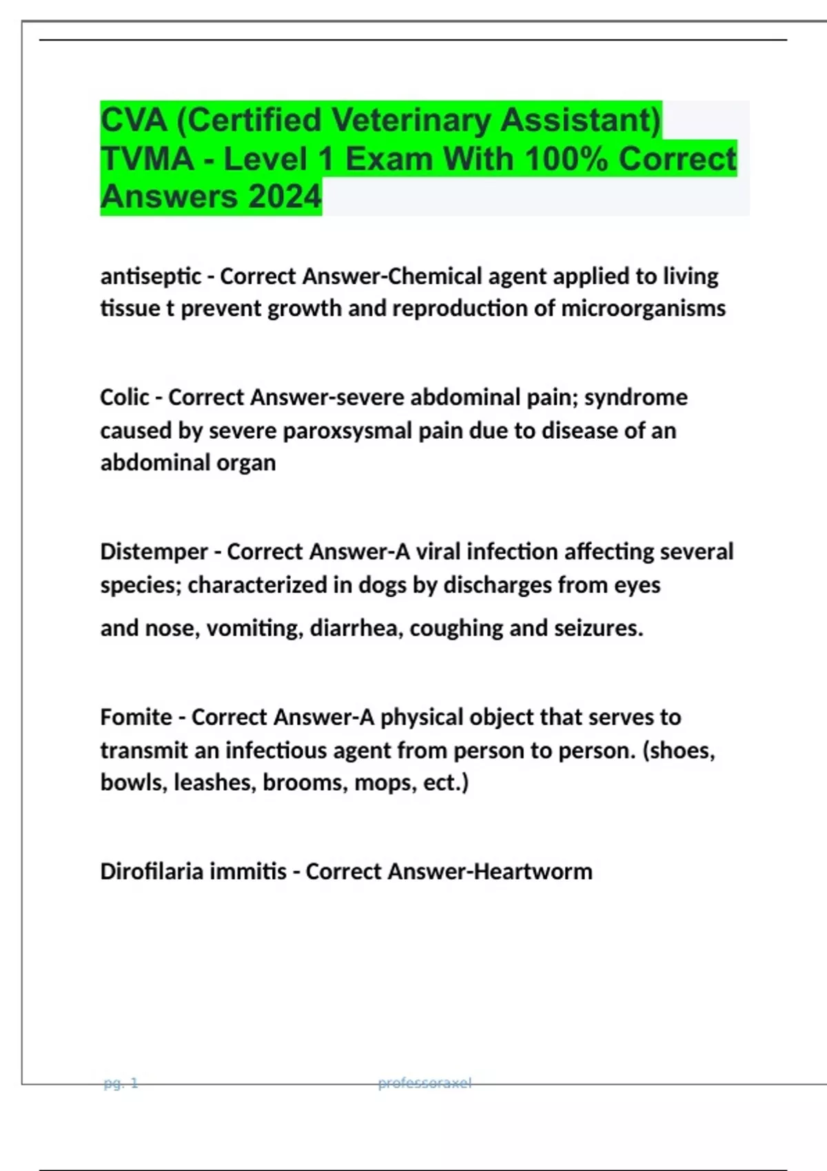 CVA (Certified Veterinary Assistant) TVMA - Level 1 Exam With 100% Correct Answers 2024