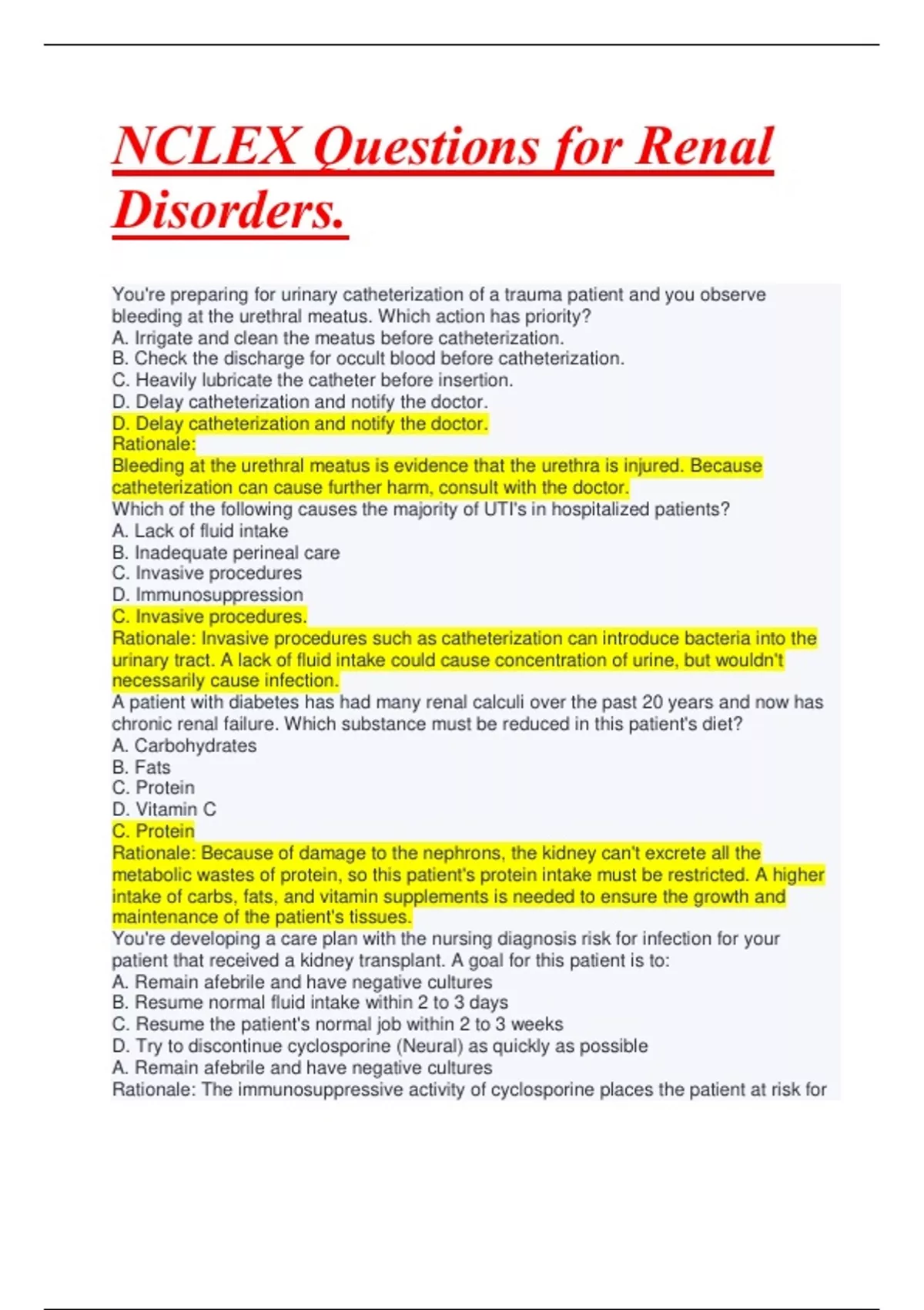 NCLEX Questions for Renal Evaluation Database Inquiries and Solutions (Recent Version)