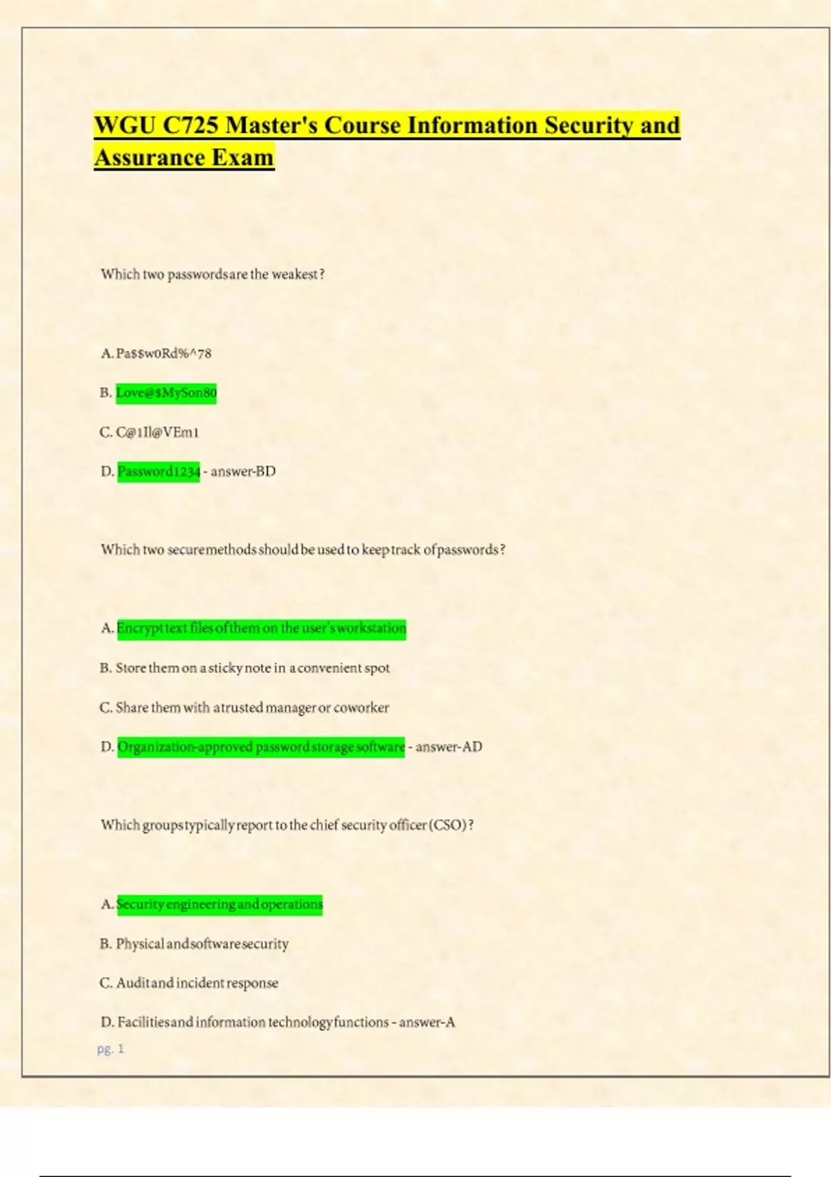 WGU C725 Master's Course Information Security and Assurance Exam || 2024