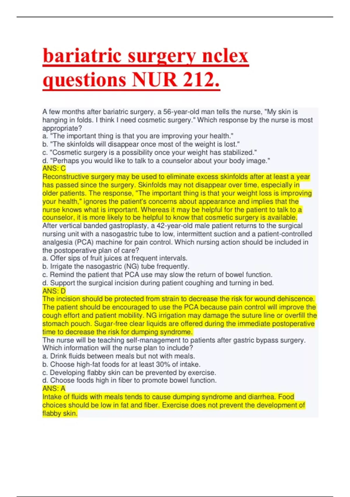 bariatric surgery nclex Quiz Catalog Inquiries and Solutions (Recent Compilation)