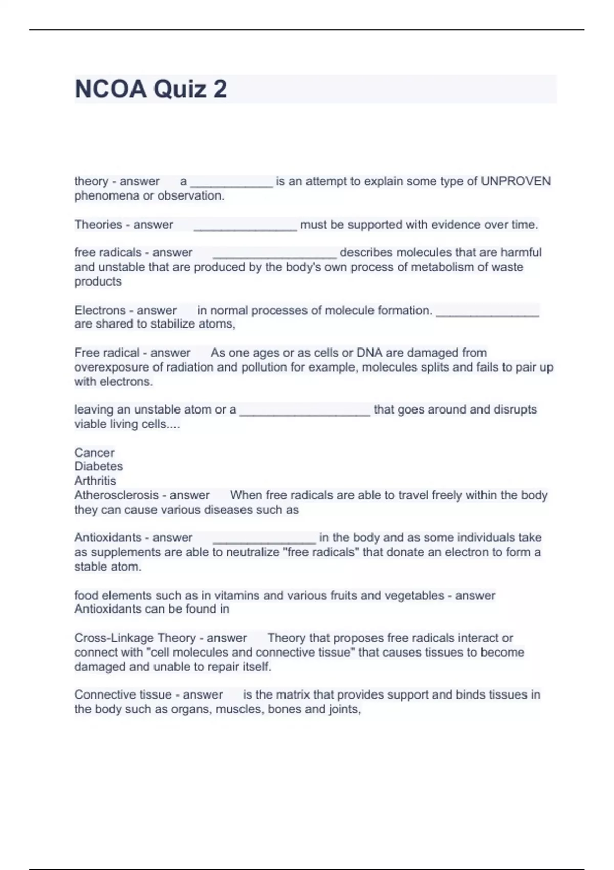 Exam of 5 pages for the course NCOA at NCOA (NCOA Quiz 2)