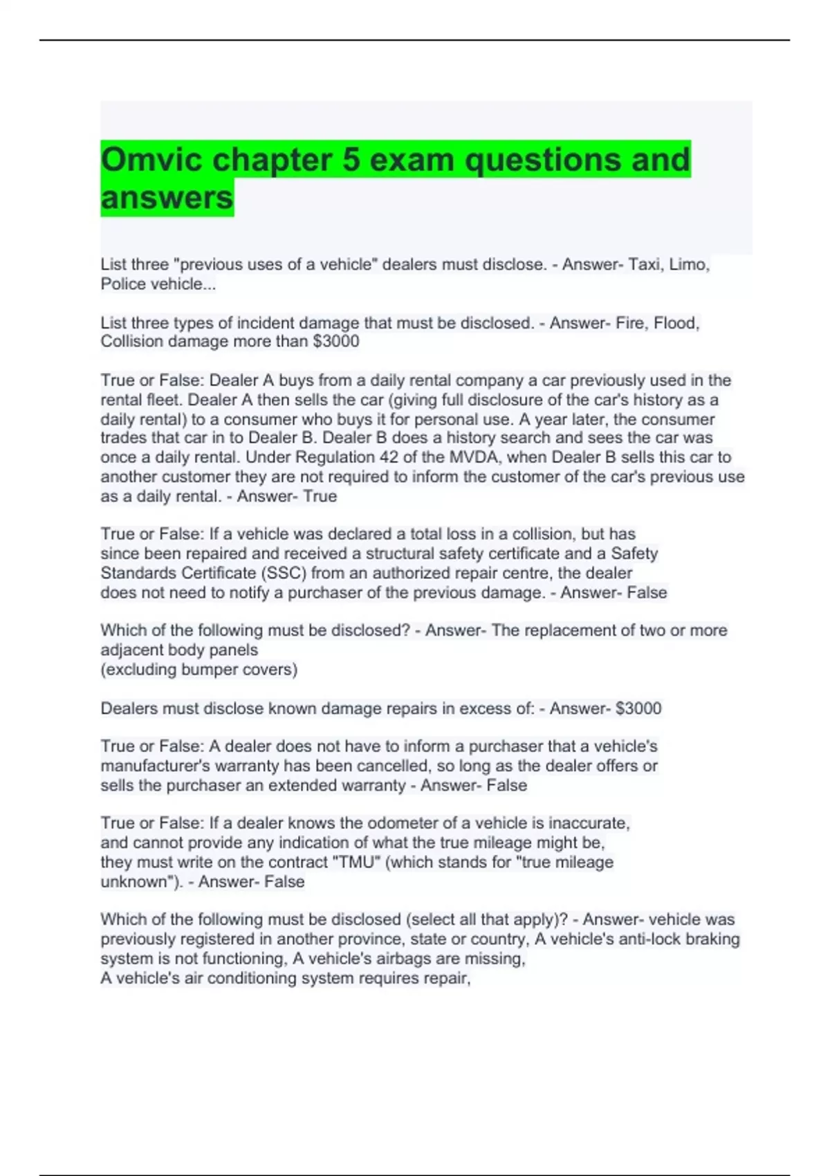 omvic chapter 5 exam questions and answers