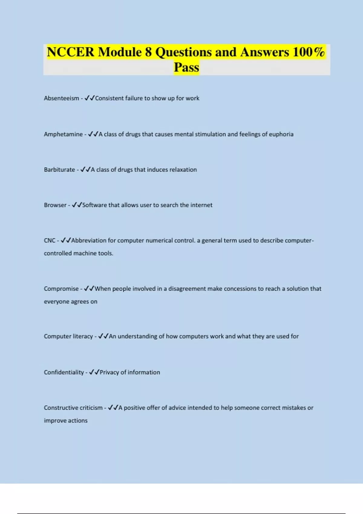 nccer module 8 questions and answers 100 pass