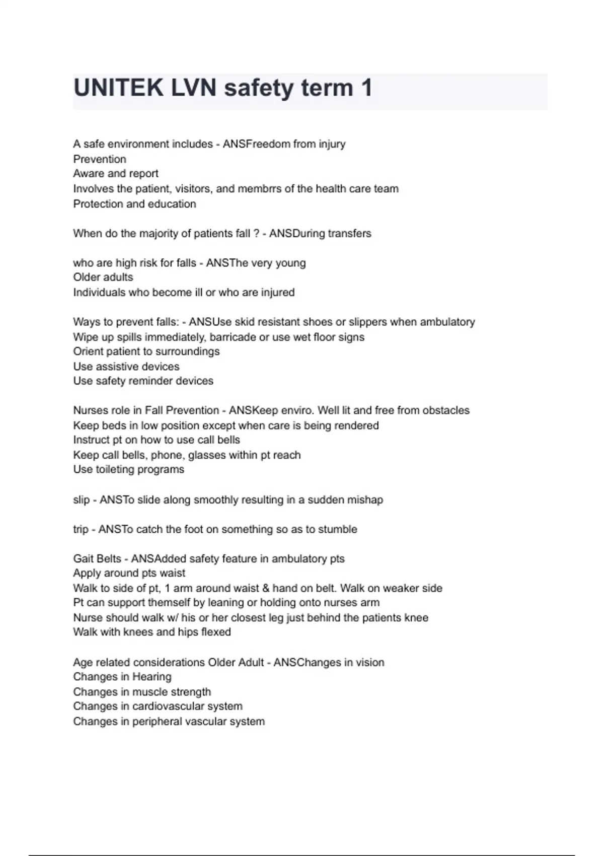 Ways to prevent falls: - ANSUse skid resistant shoes or slippers when ambulatory