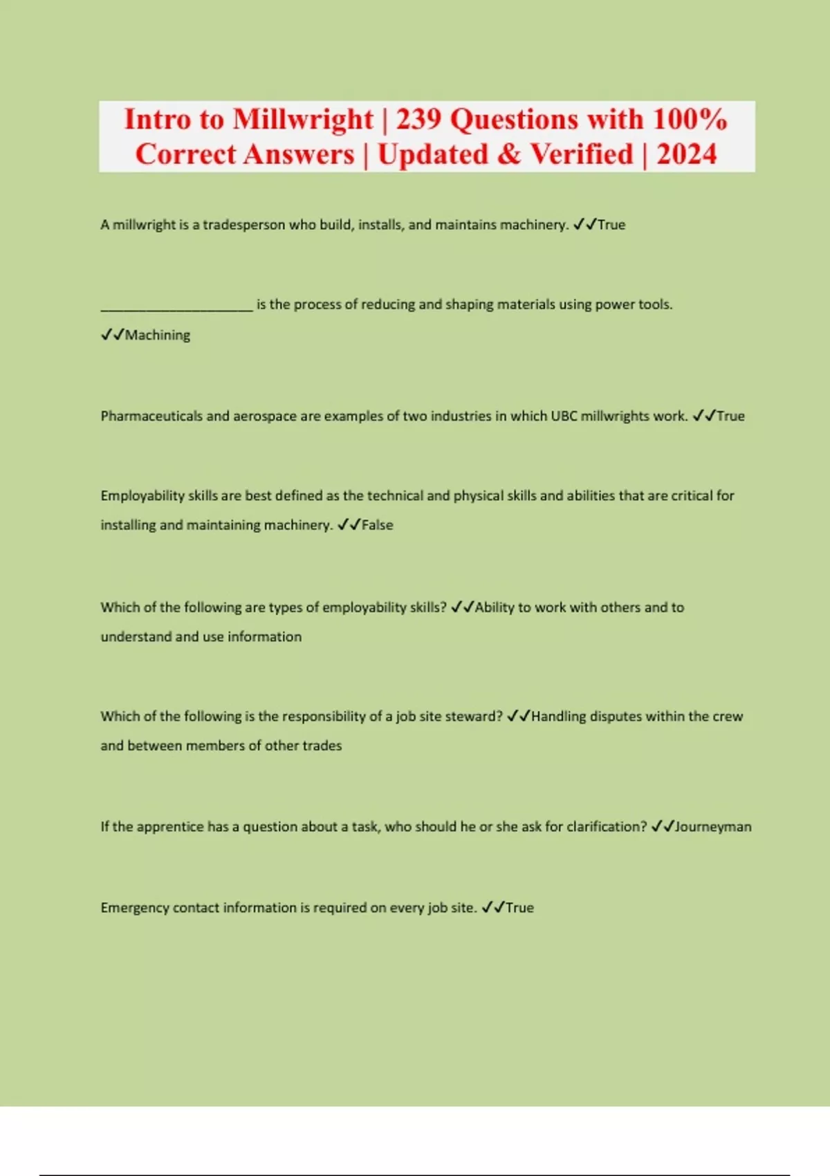 NCCER study guide Module 1 Basic Safety Questions and Answers 100% Pass