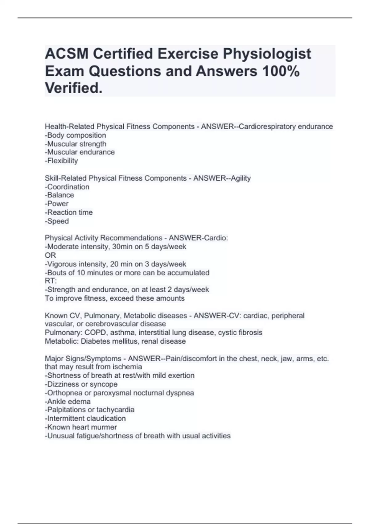 ACSM Certified Exercise Physiologist Exam Questions and Answers 100% Verified.