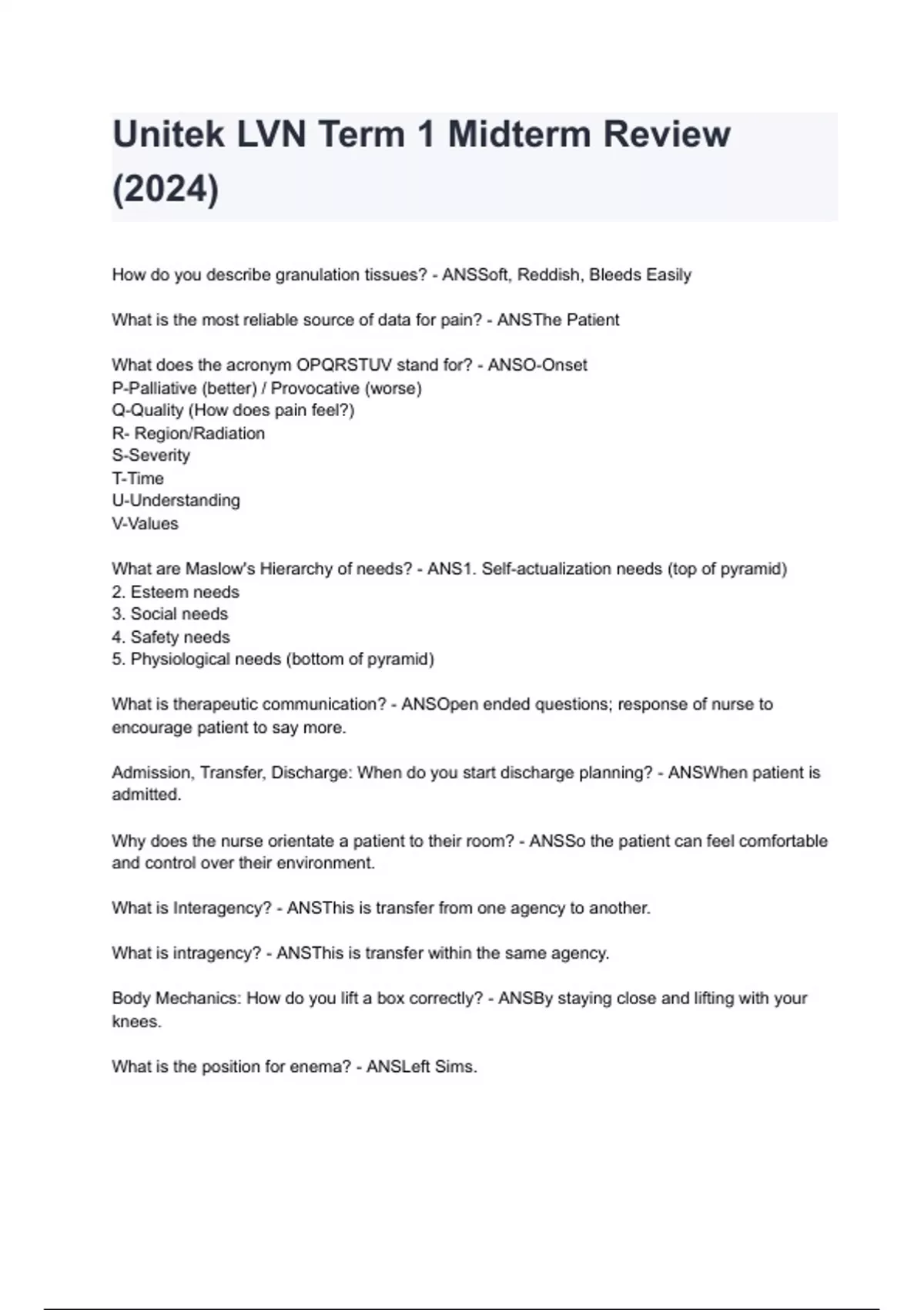 What does the acronym OPQRSTUV stand for? - ANSO-Onset