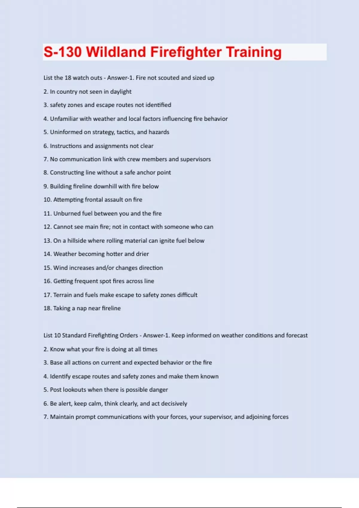 S-130 Wildland Firefighter Training (Actual) Questions With Correct Solutions.