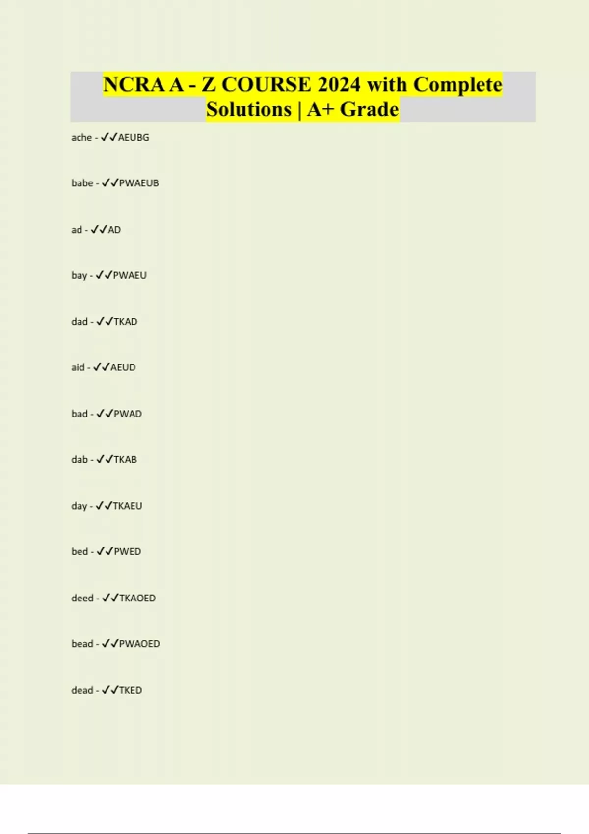 NCRA A - Z COURSE 2024 with Complete Solutions | A+ Grade