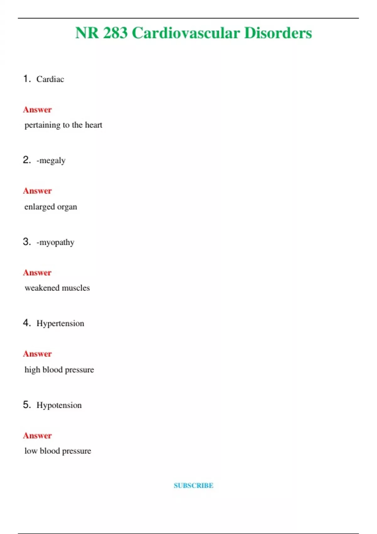 NR 283 Cardiovascular Disorders (Latest 2024 / 2025) Questions and Answers (Verified Answers)