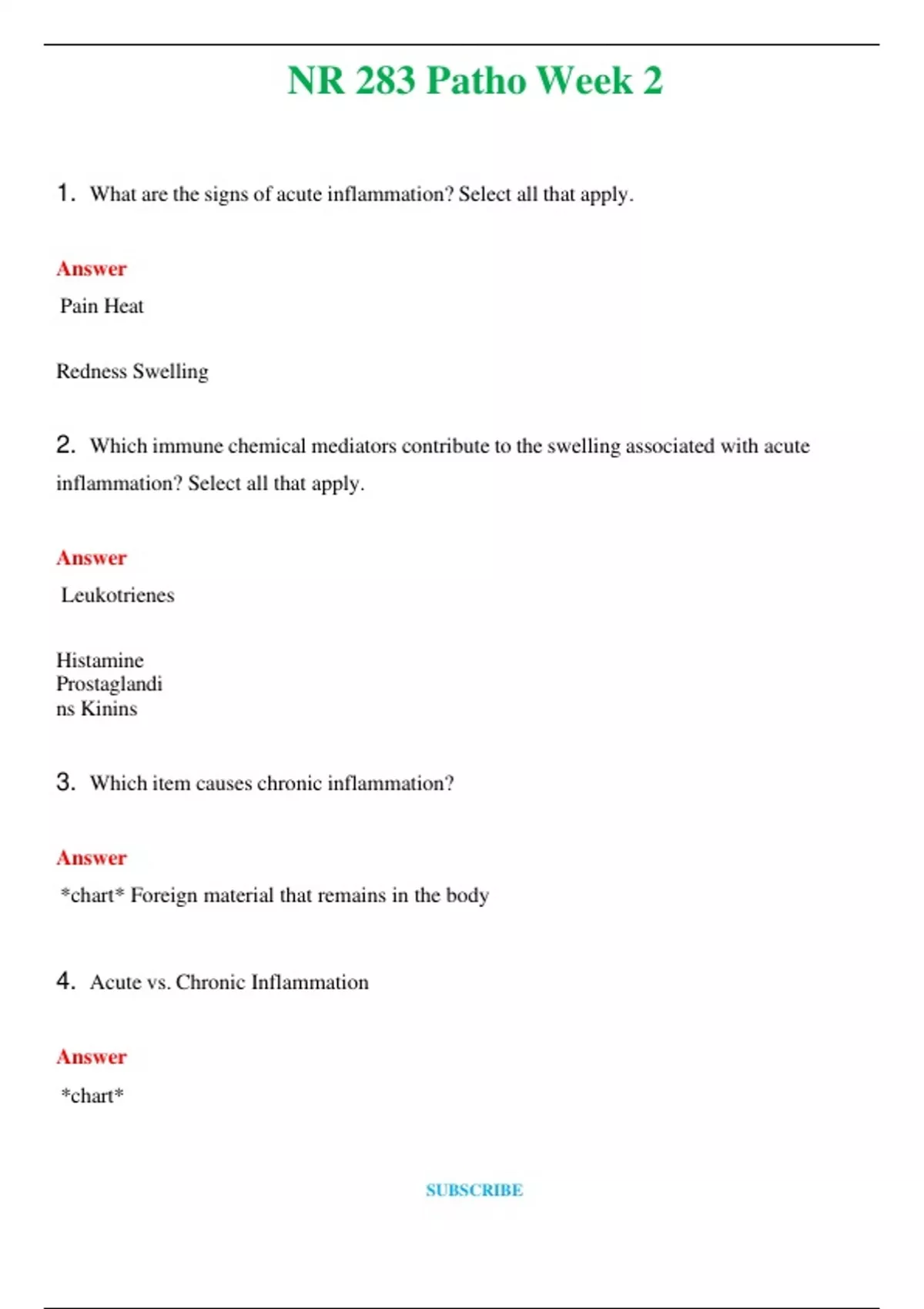 NR 283 Patho Week 2 (Latest 2024 / 2025) Questions and Answers (Verified Answers)