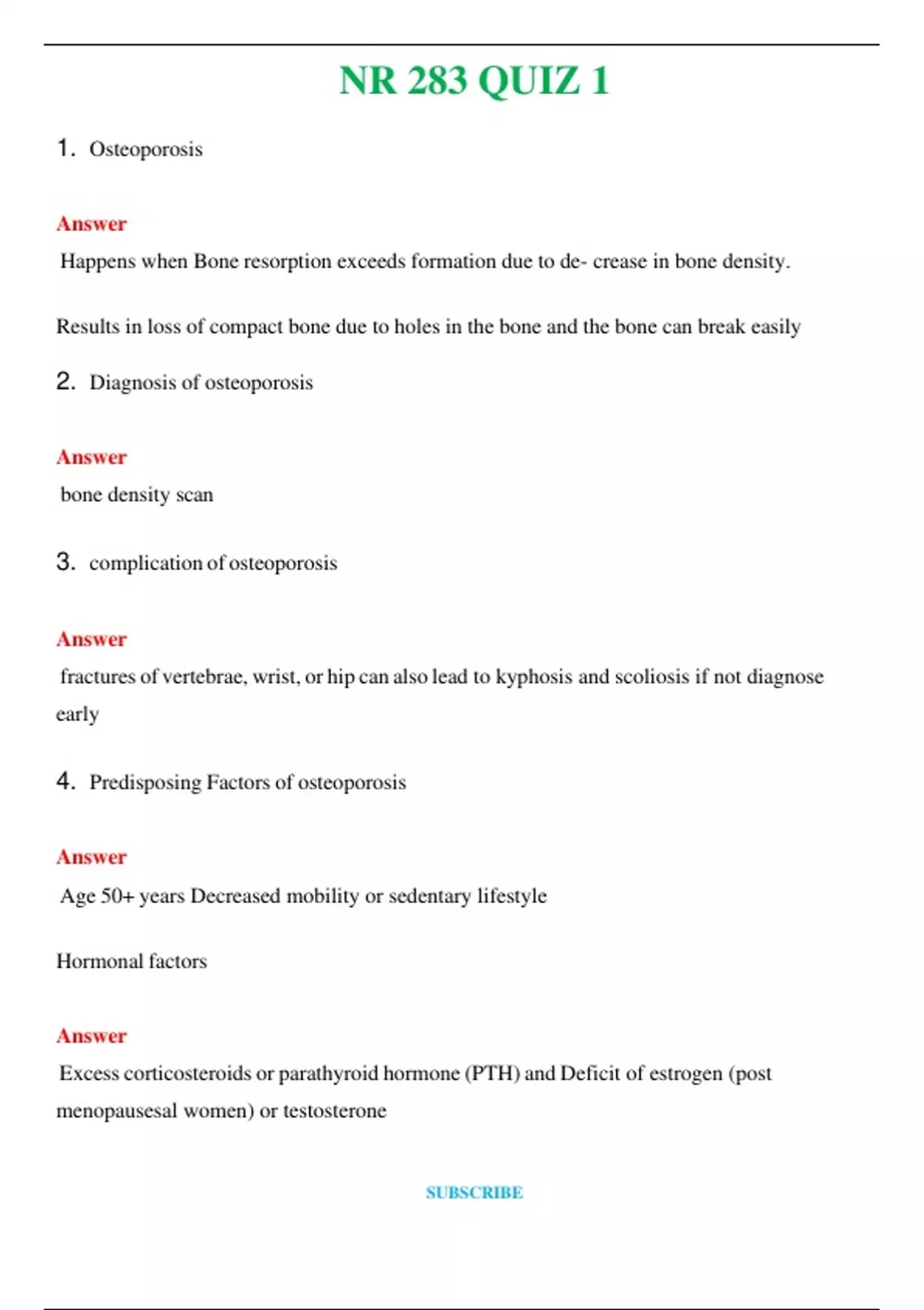 NR 283 QUIZ 1 (Latest 2024 / 2025) Questions and Answers (Verified Answers)