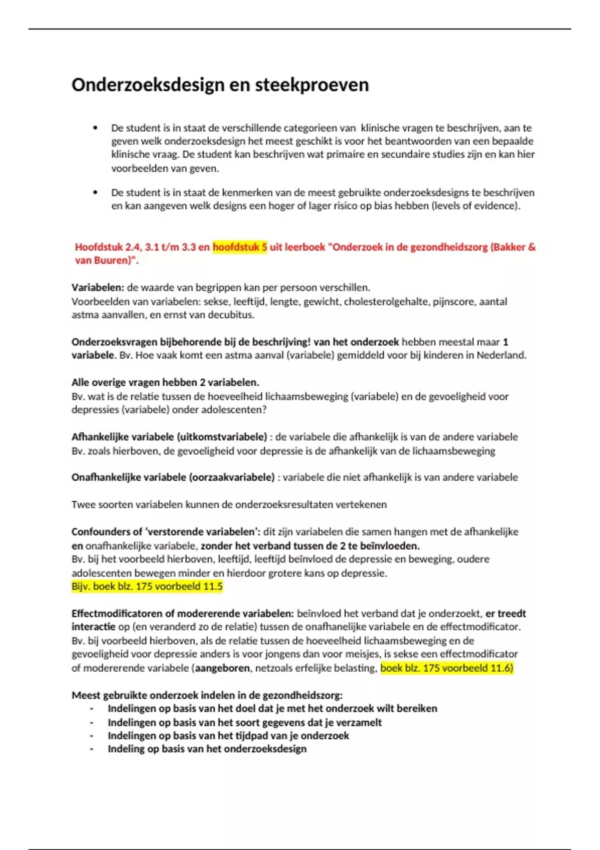 Hoofdstuk 2.4, 3.1 t/m 3.3 en hoofdstuk 5 uit leerboek "Onderzoek in de gezondheidszorg (Bakker &