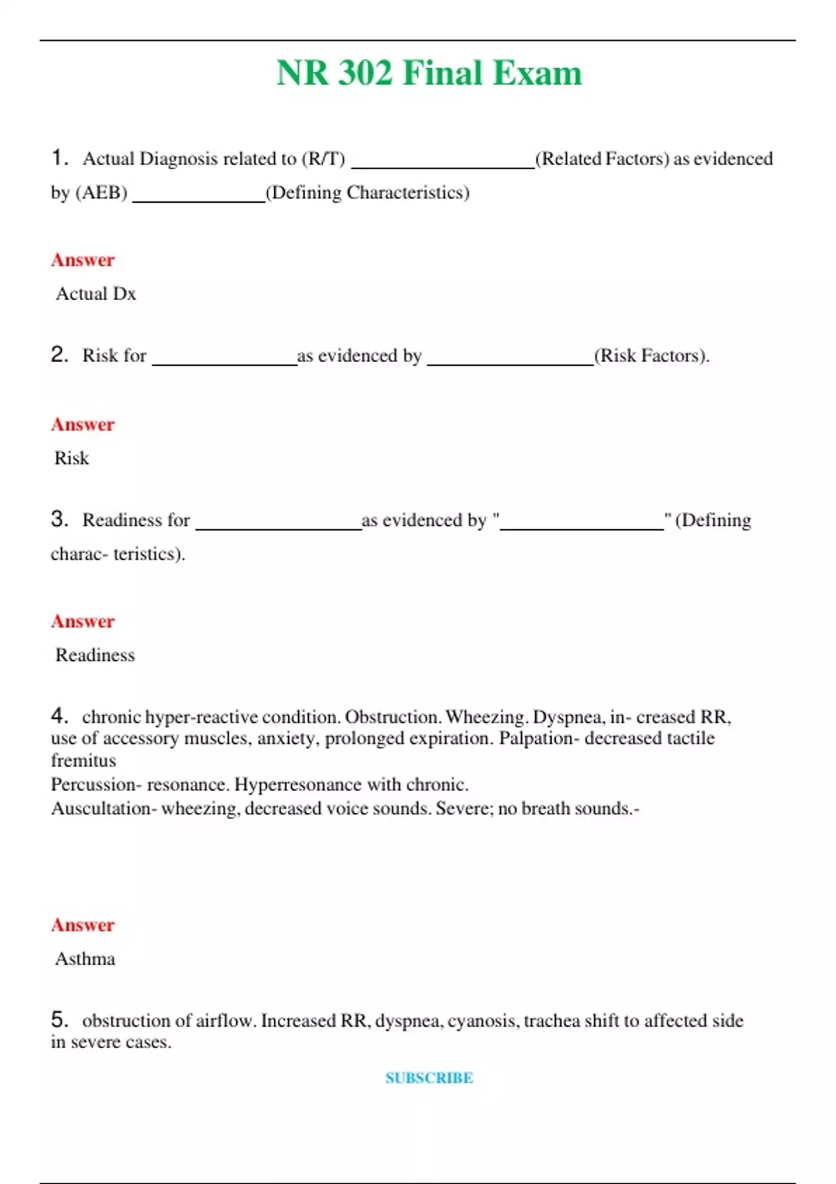 NR 302 Final Exam (Latest 2024 / 2025) Questions and Answers (Verified Answers)