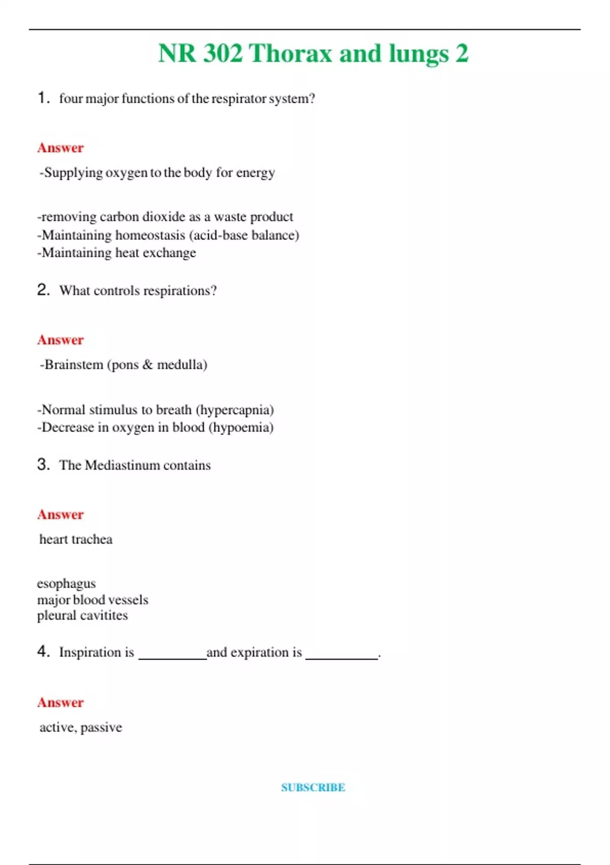 NR 302 Thorax and lungs 2 (Latest 2024 / 2025) Questions and Answers (Verified Answers)