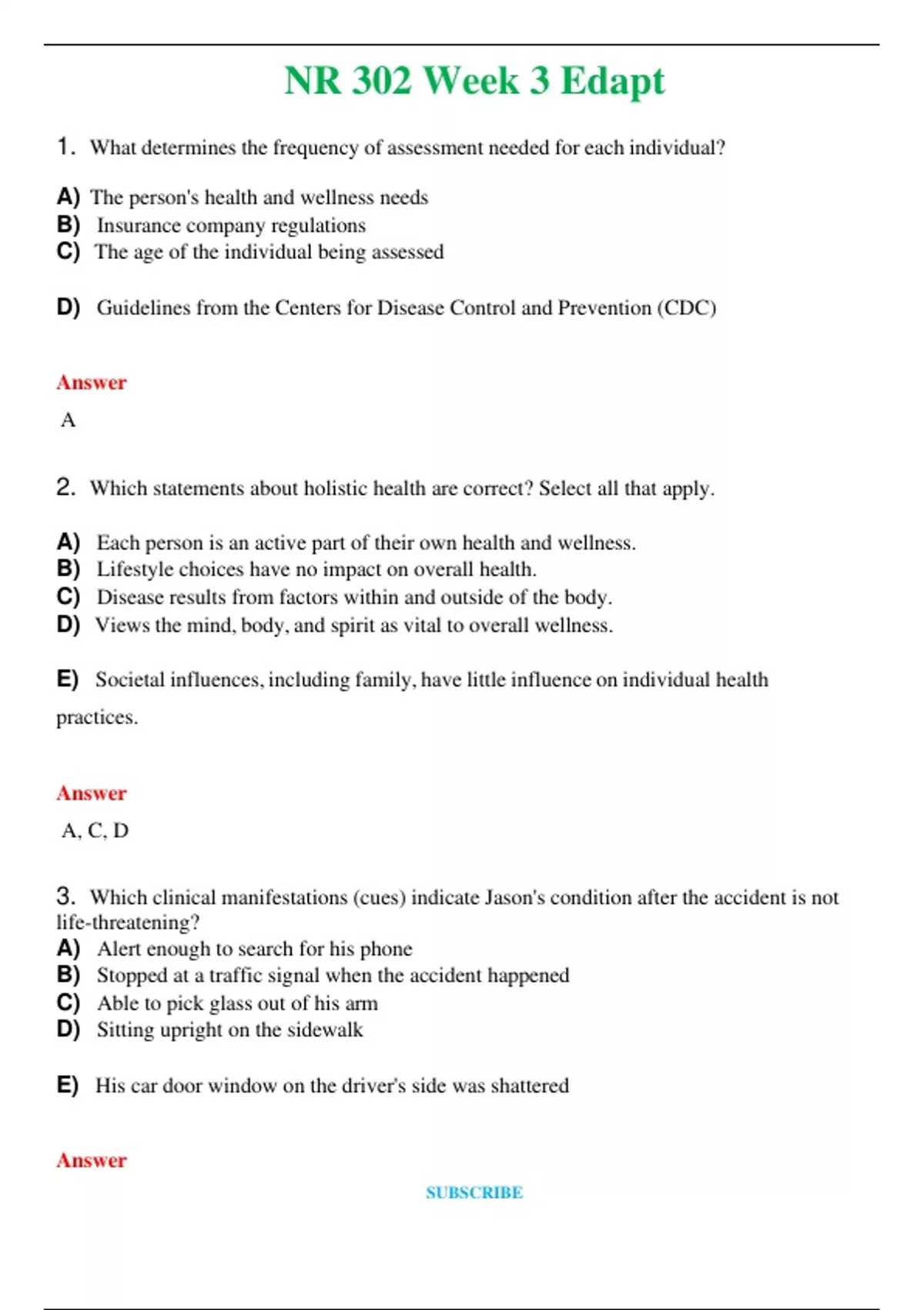 NR 302 Week 3 Edapt (Latest 2024 / 2025) Questions and Answers (Verified Answers)