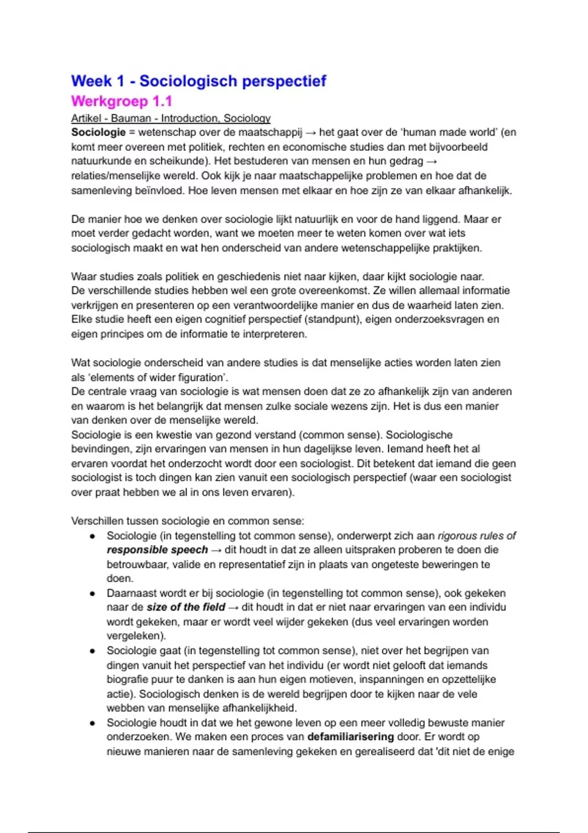 actie). Sociologisch denken is de wereld begrijpen door te kijken naar de vele