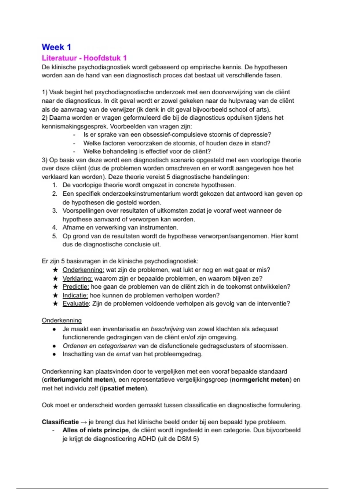 Samenvatting Diagnostiek voor de Klinische Praktijk