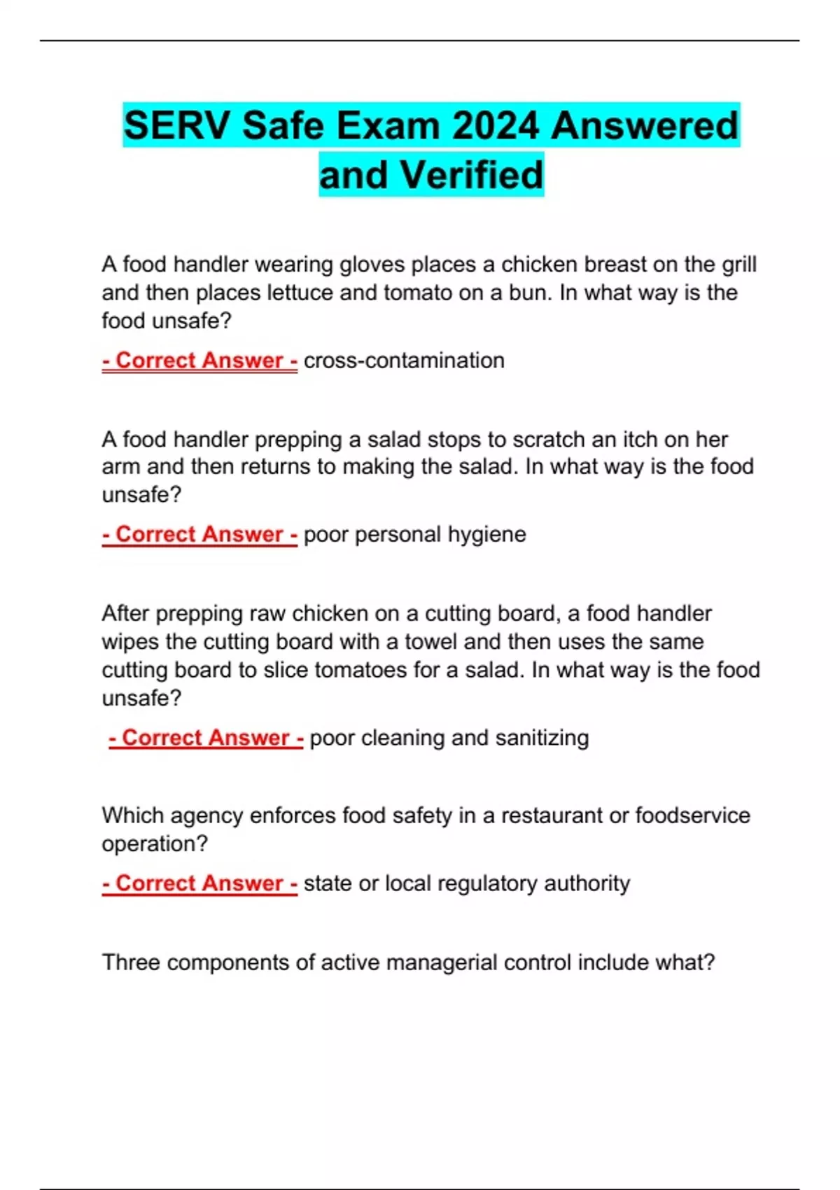 SERV Safe Exam 2024 Answered and Verified SERV Safe Exam 2024 Answered and Verified SERV Safe Exam 2024 Answered and Verified