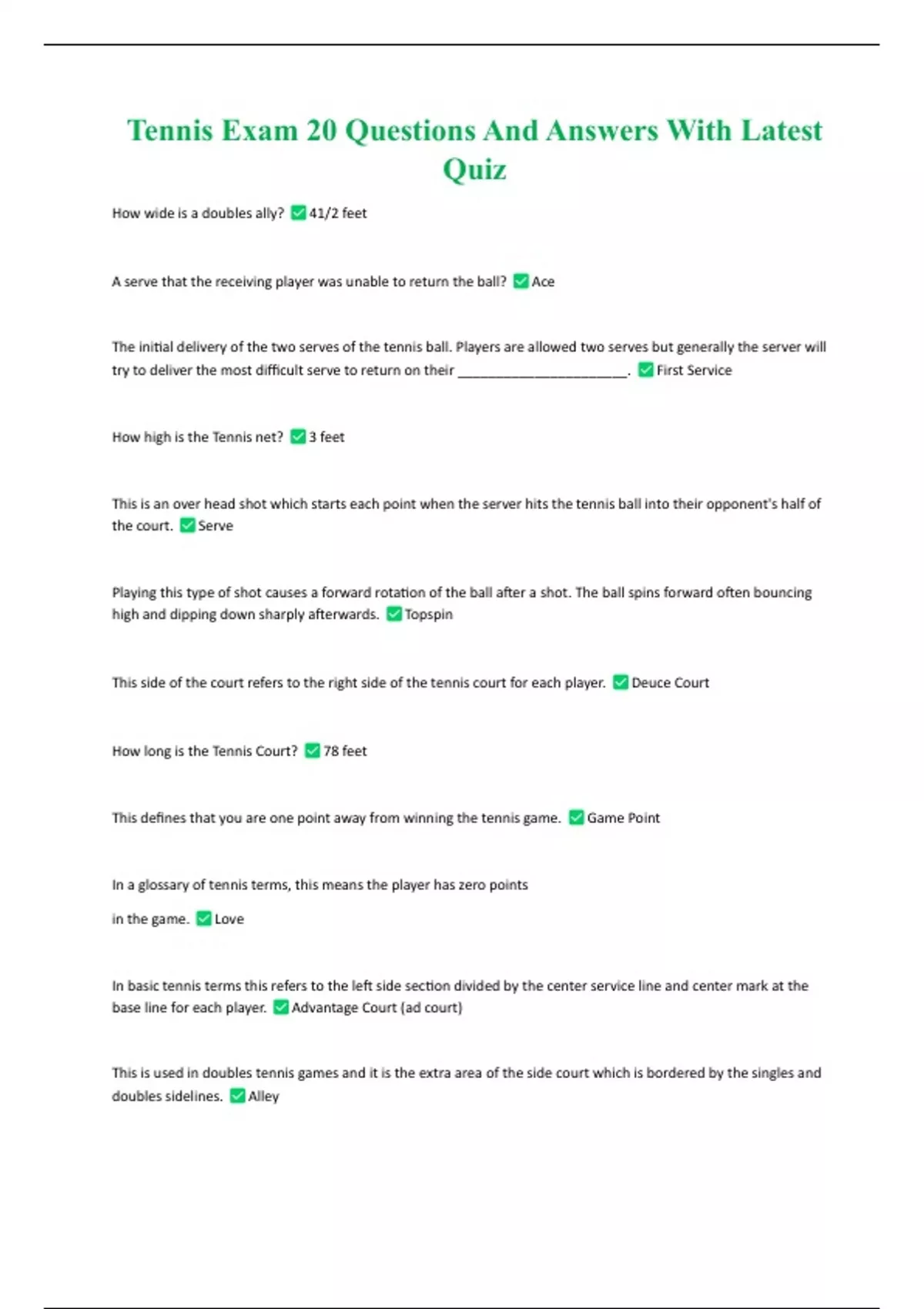 Tennis Exam 20 Questions And Answers With Latest Quiz Tennis Exam 20 Questions And Answers With Latest Quiz