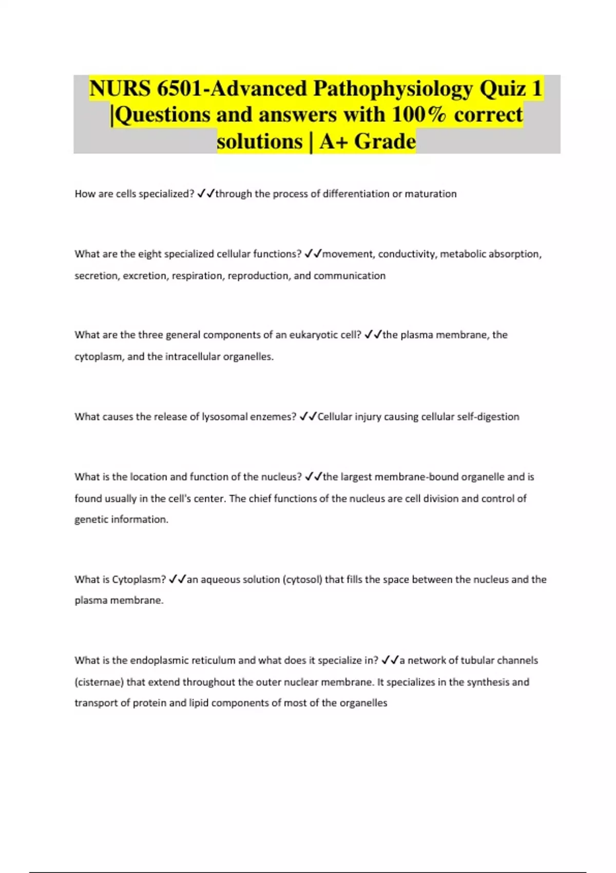 NURS 6501-Advanced Pathophysiology Quiz 1 |Questions and answers with 100% correct solutions | A+ Grade