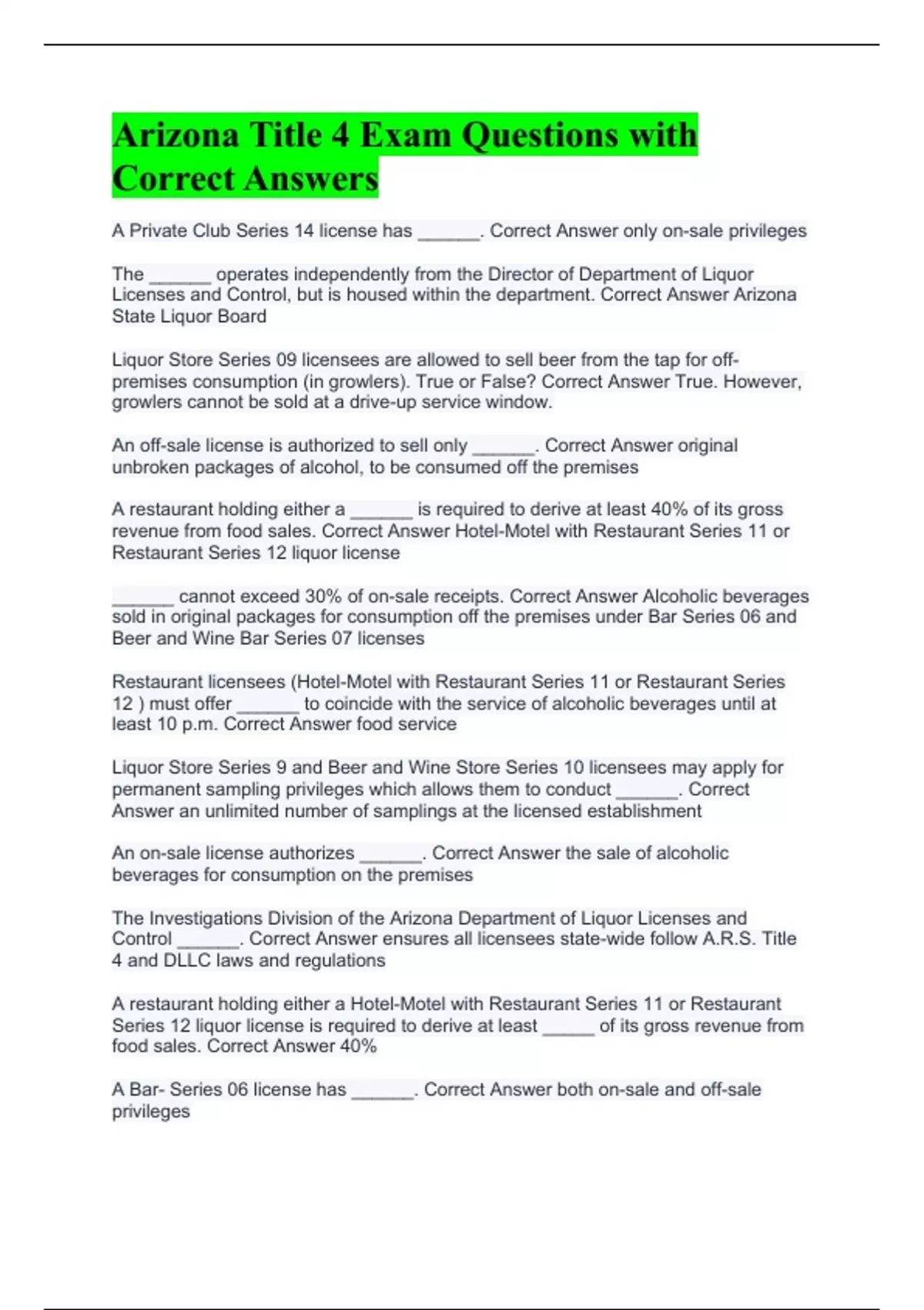 Arizona Title 4 Exam Questions with Correct Answers